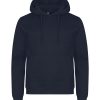 Ein Unisex-Kapuzenpullover aus Baumwolle und recyceltem Polyester. Kordelzug an der Kapuze