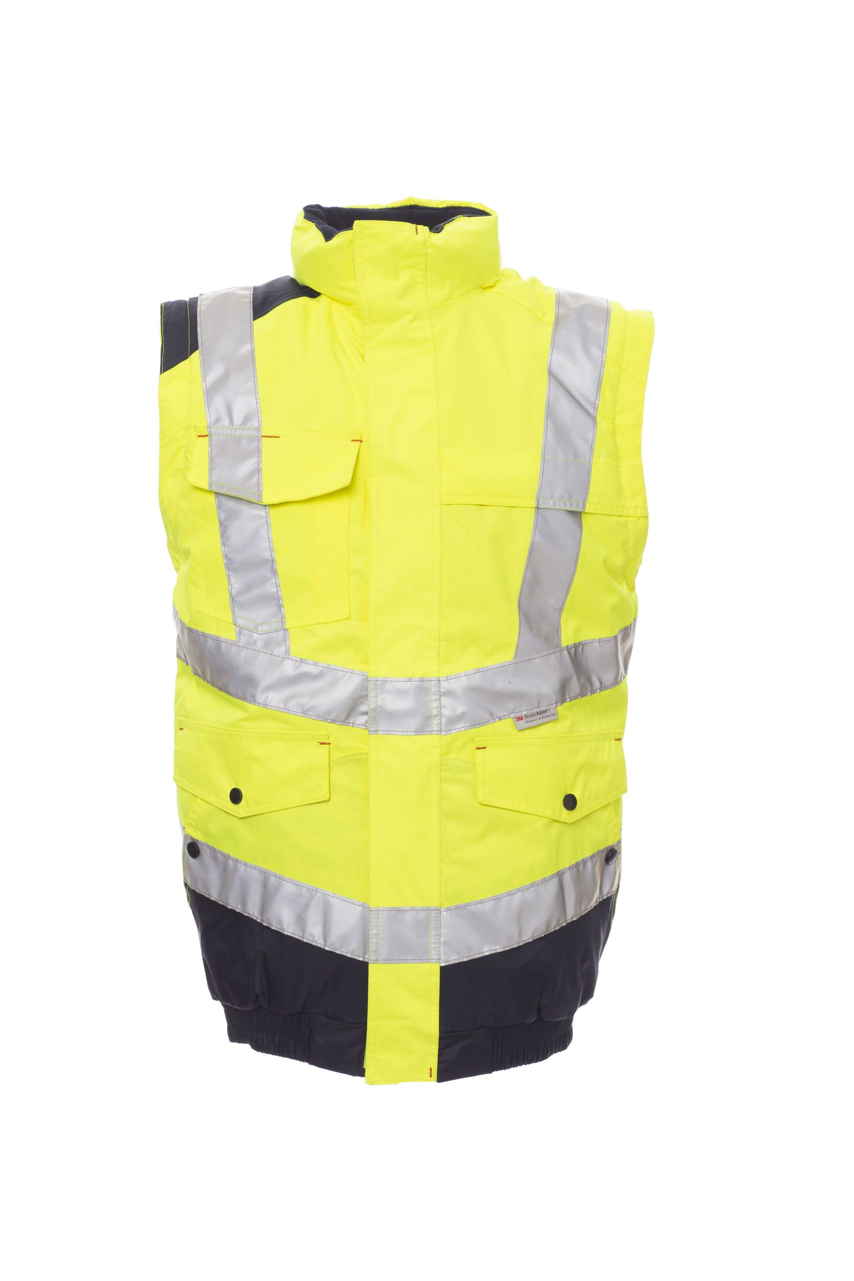 Zweifarbige Jacke für hohe Sichtbarkeit mit Reflexstreifen, verdeckter Reißverschluss aus Kunststoff mit Metallschieber