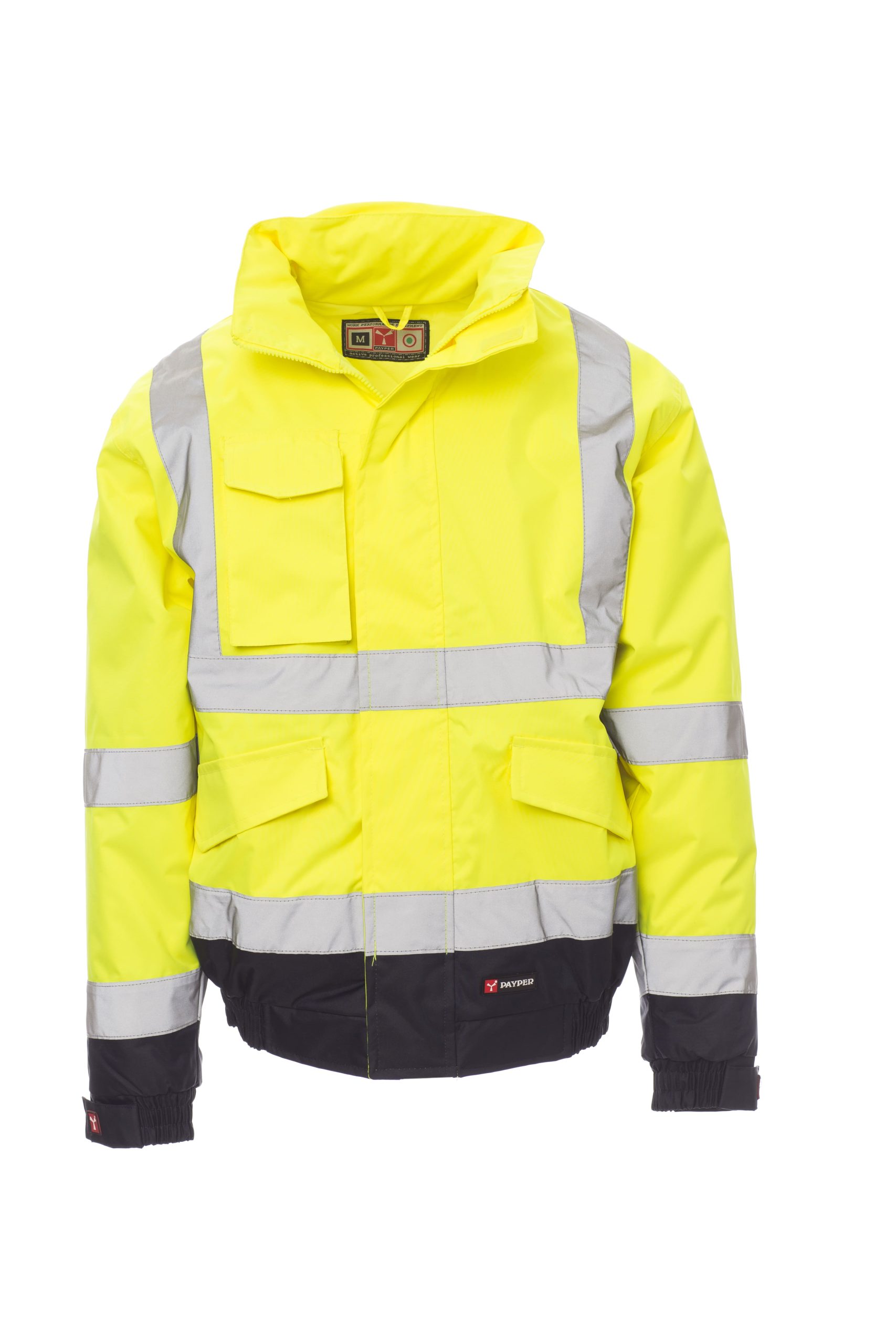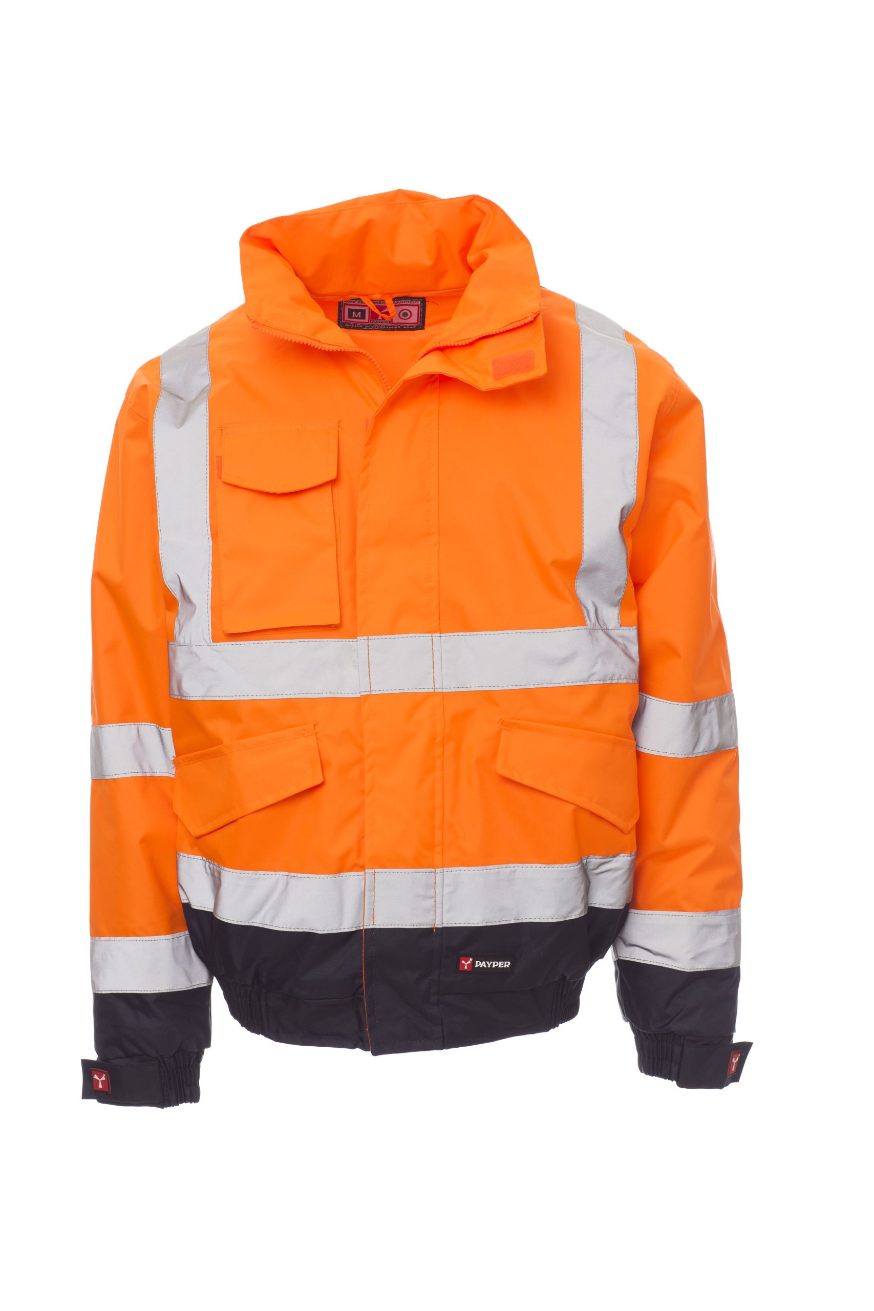 und Ärmelbündchen, 2 große Vordertaschen mit Klappe und Klettverschluss, Smartphone-Tasche und Ring zum Anhängen eines Ausweises.